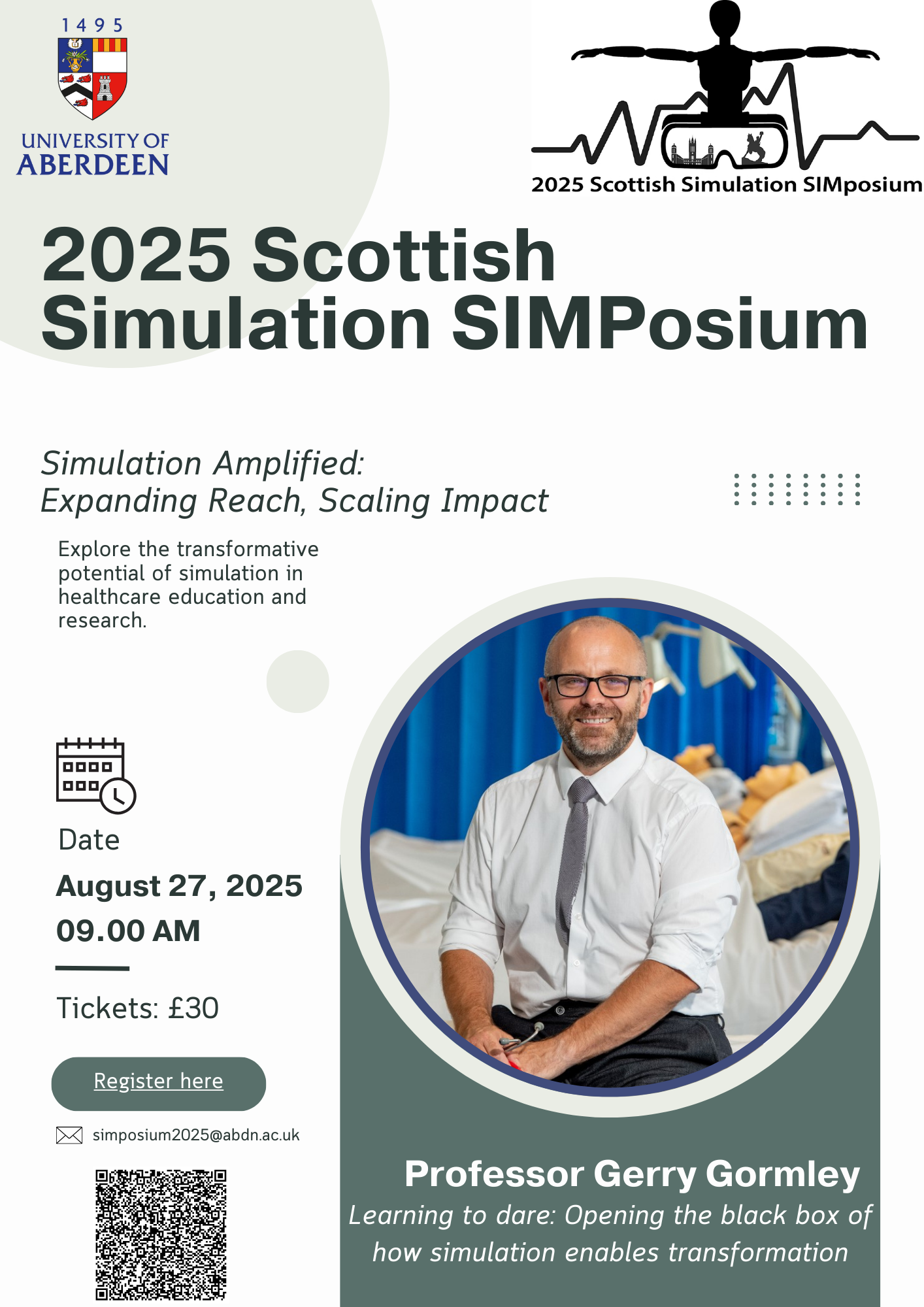 Welcome to the Scottish Simulation SIMPosium 2025, where this year’s theme, “Simulation Amplified: Expanding Reach, Scaling Impact,” highlights the transformative potential of simulation in healthcare education and research. This in-person event will take place on Wednesday, August 27, 2025, at the Suttie Centre for Teaching & Learning in Healthcare.