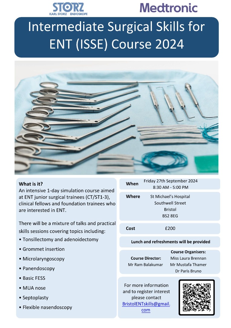 For more information and to register interest please contact BristolENTskills@gmail.com
