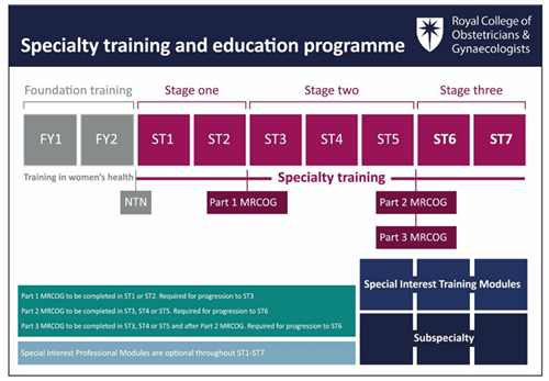 Since the change in curriculum in August 2024, a trainee must complete all three stages of training of the core curriculum in O+G as well as two Special Interest Training Modules (SITMs) or Subspecialty Training.