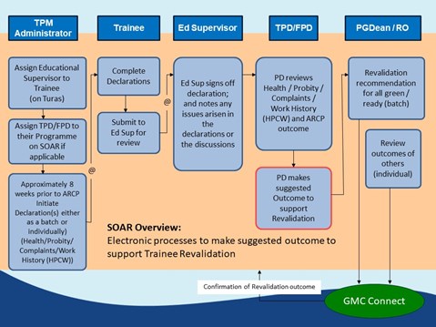 Please consult this very useful guidance on your SOAR / Revalidation responsibilities as TPD: SOAR Guidance for PDs